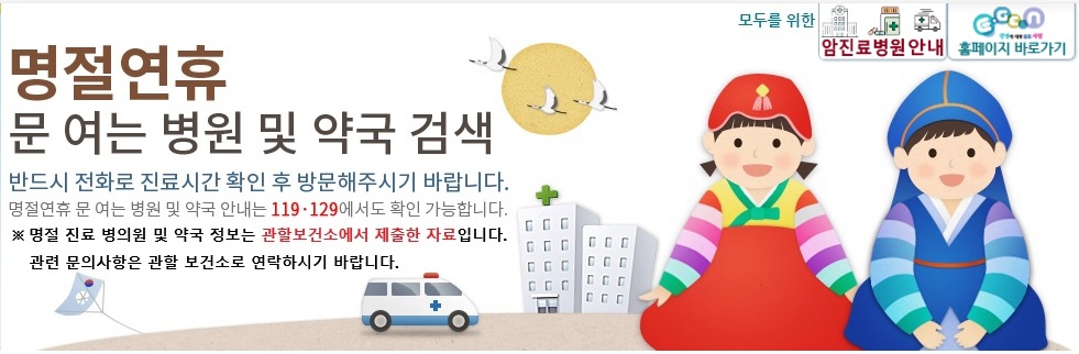 - 119/129/120 전화 문의: 응급환자의 경우 119, 129(보건복지콜센터), 또는 각 지역별 120번 시도콜센터에서 연휴 동안 문을 여는 병원 정보를 실시간으로 안내받을 수 있습니다